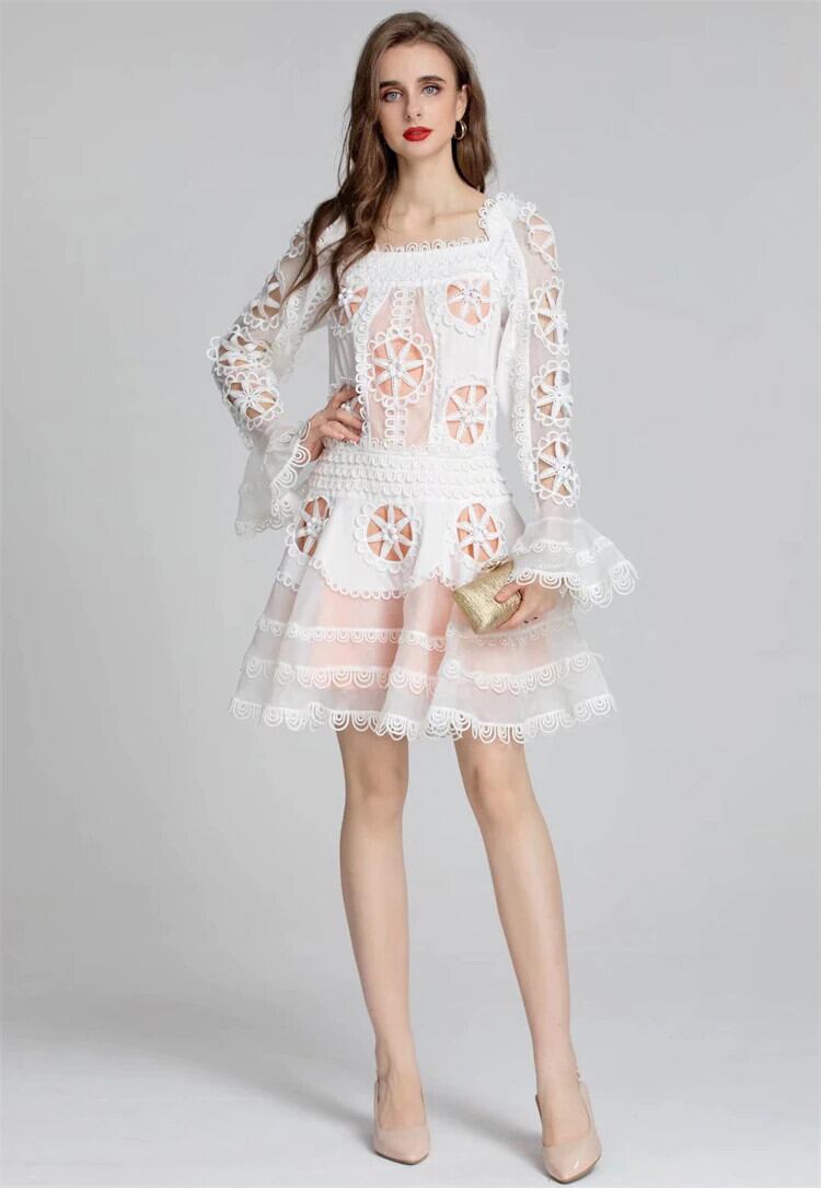 女性の春夏セクシーな水溶性レース ミニ ドレス パーティー ドレス スプリング 春物 サマー 夏物 pri69108182832