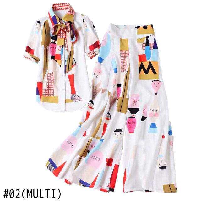 春秋の女性のセット シャツ トップス パンツ パーティー オフィス プリント スーツ スプリング 春物 オータム 秋物 会社 学校 通勤や通学にも pri7314693229