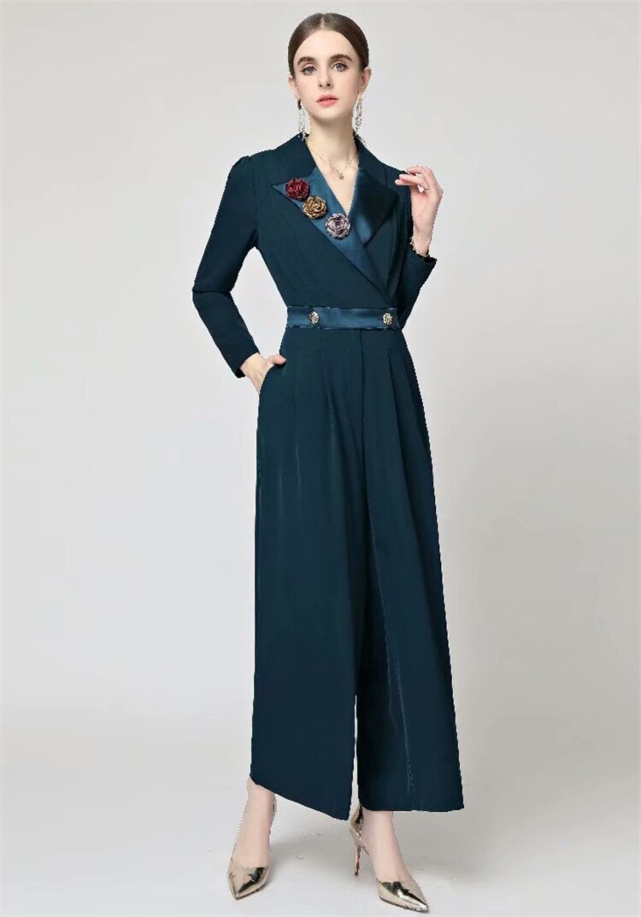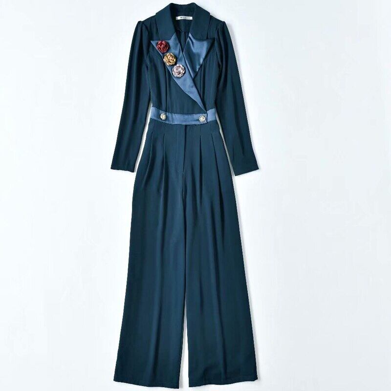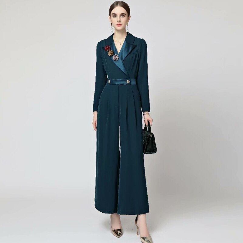 ロンパース春秋の女性のパーティーオフィス花ズボンジャンプスーツ スプリング 春物 オータム 秋物 フラワーデザイン 会社 学校 通勤や通学にも pri14458079594