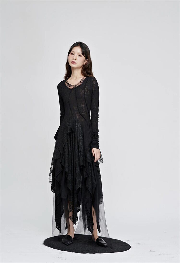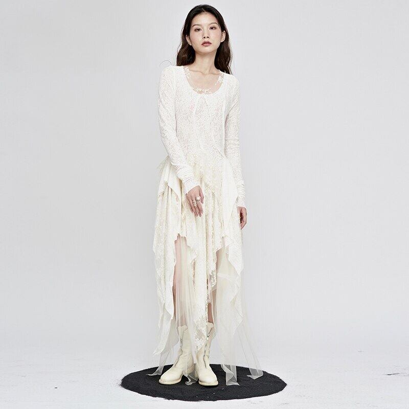 2022 春 レディース パーティー セクシー レース 長袖 イレギュラーワンピース ロング スプリング 春物 pri92191237610