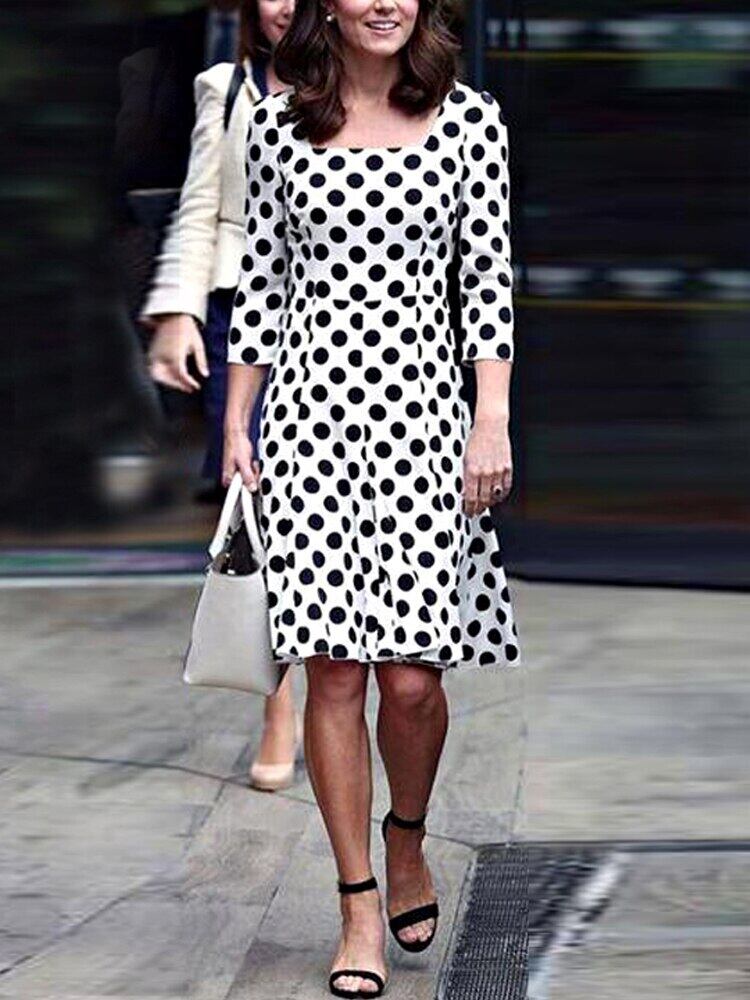 ケイト春秋の女性のシックなパッチワーク ドット プリント パーティー オフィス ドレス スプリング 春物 オータム 秋物 会社 学校 通勤や通学にも pri64485674354