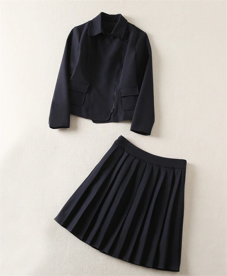ケイト春秋の女性セット ジッパー スーツ トップス プリーツ スカート オフィス パーティー 2 ピース スーツ スプリング 春物 オータム 秋物 会社 学校 通勤や通学にも pri11737344673
