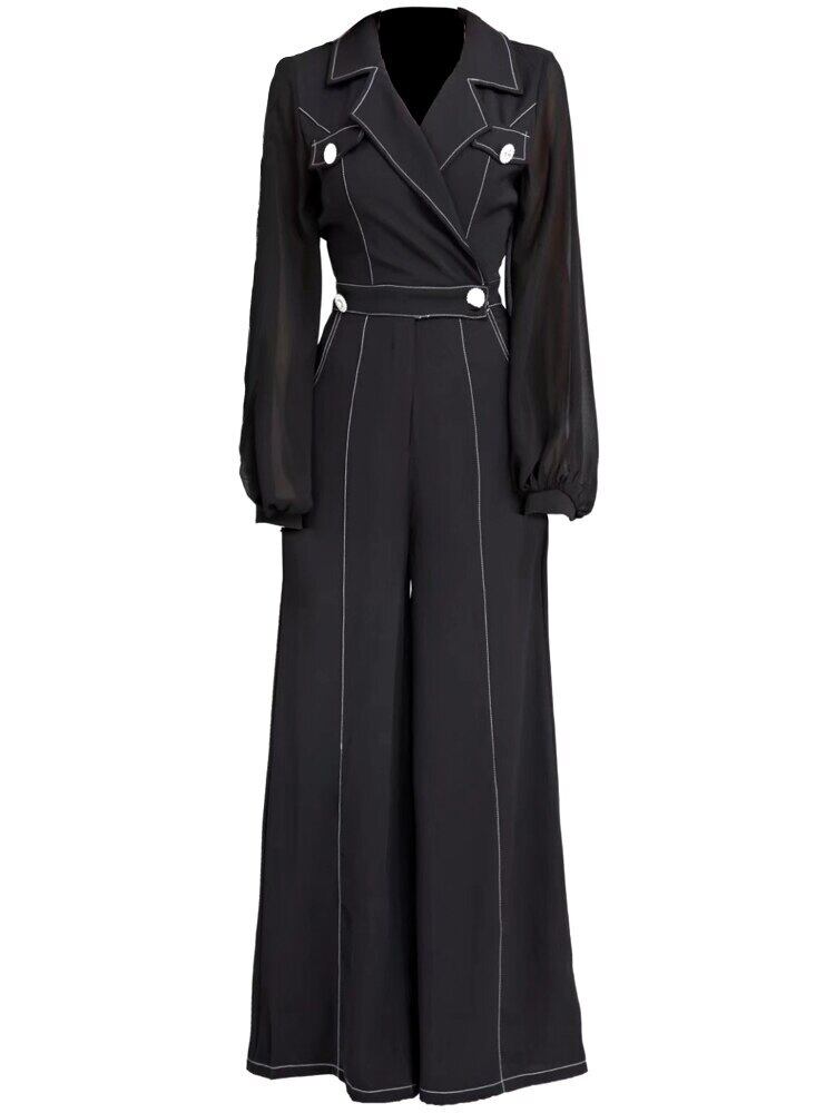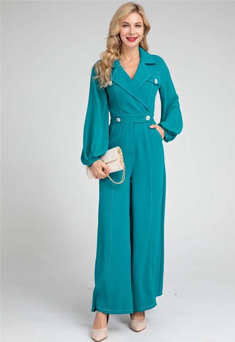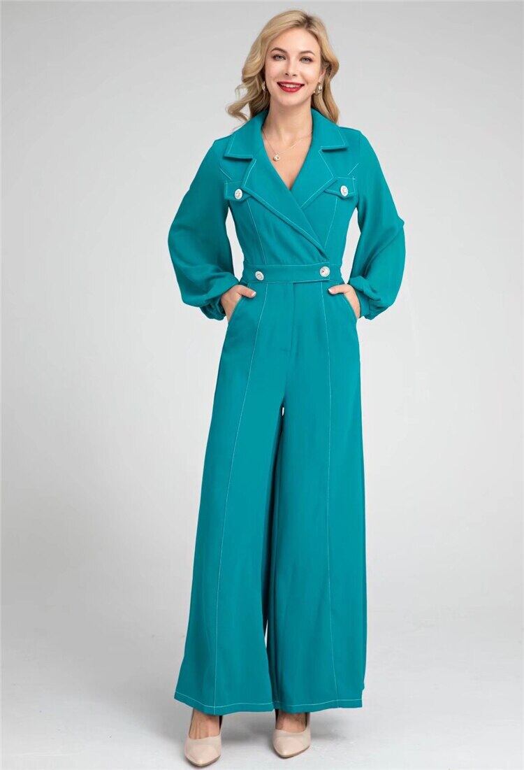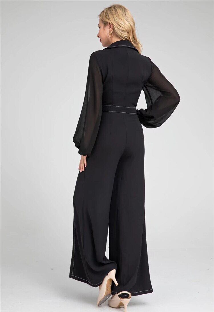 春秋の女性ロンパースオフィスワイドレッグパンツ長袖ジャンプスーツ ロング スプリング 春物 オータム 秋物 ワイドパンツ 会社 学校 通勤や通学にも pri28909526073