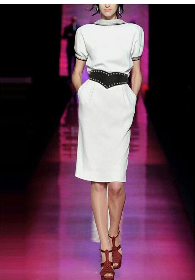 滑走路の女性の夏の有名人のパーティー ベルト スリム ホワイト ペンシル ドレス サマー 夏物 ハーネス pri8723922333