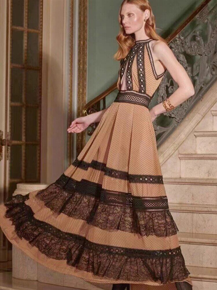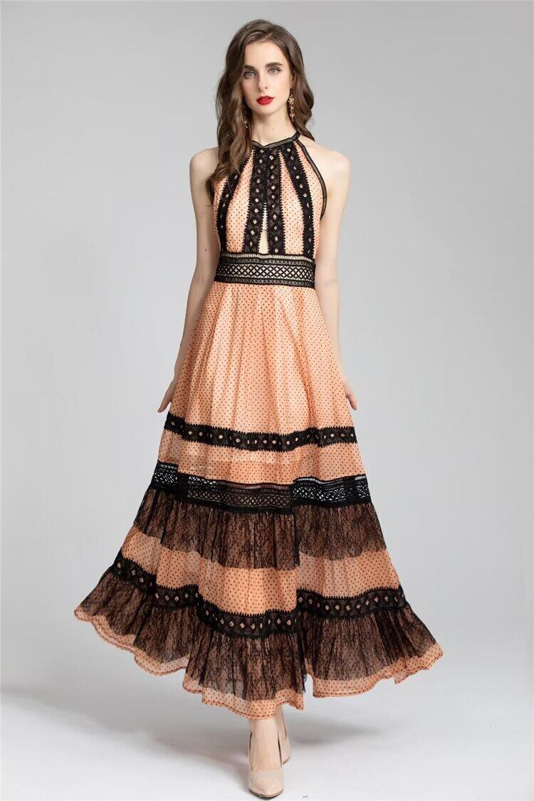 夏の女性ストリート レース パッチワーク セクシーな有名人のパーティー ロング ドレス サマー 夏物 pri52448556045