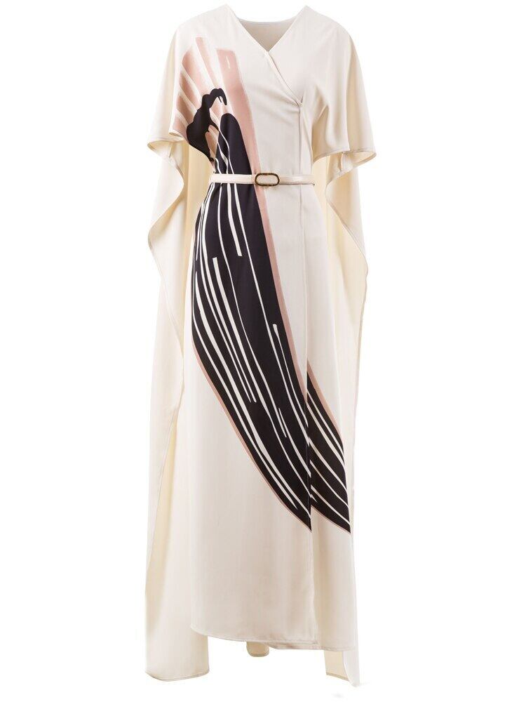 滑走路の女性の夏のシックなストリートセレブパーティー V ネックケープロングドレス サマー 夏物 Vネック pri52595595273