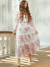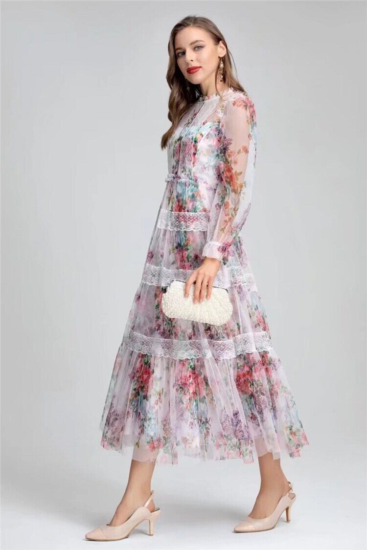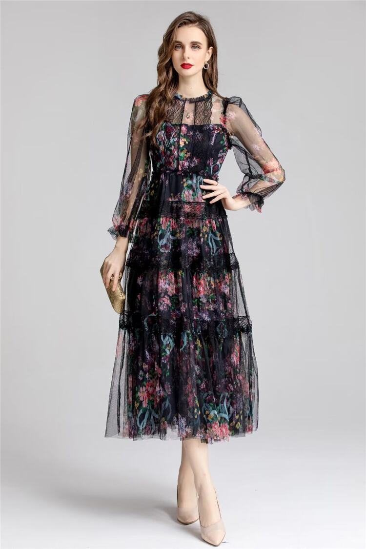 春夏レディースストリートセレブリティパーティープリントメッシュロングドレス スプリング 春物 サマー 夏物 pri74339986828