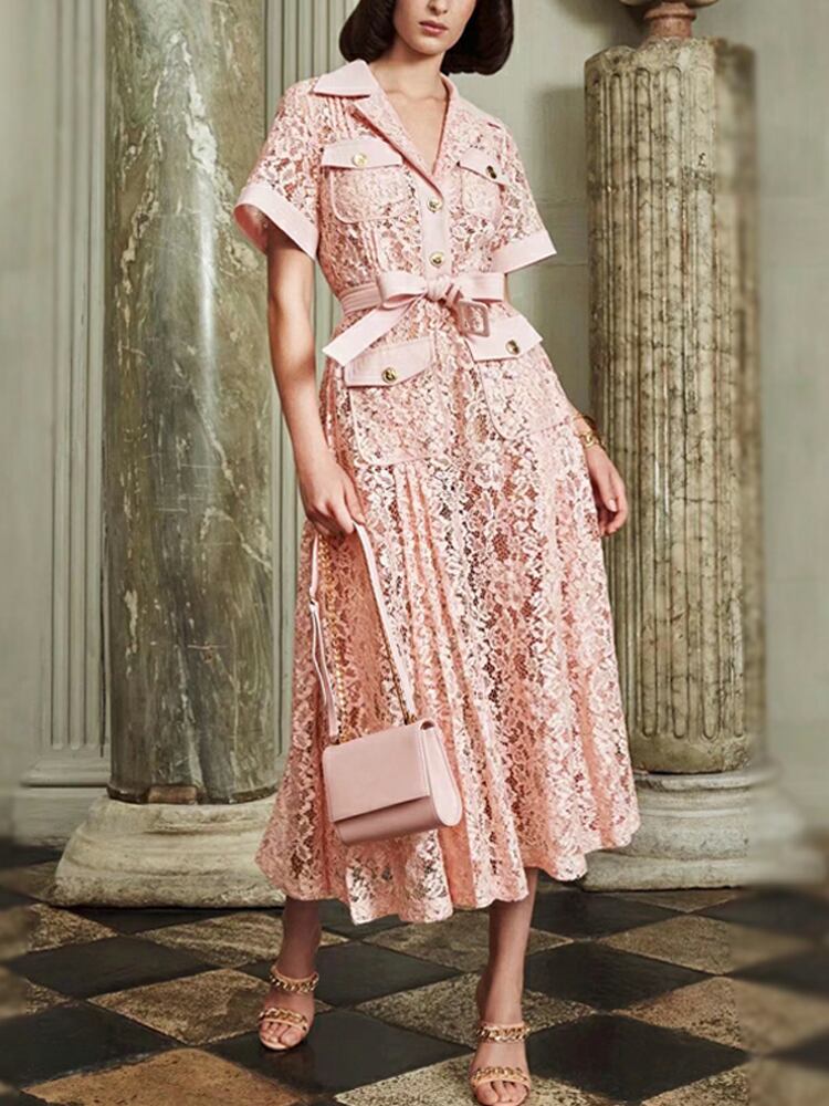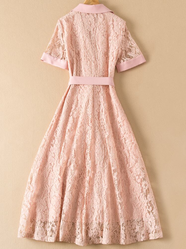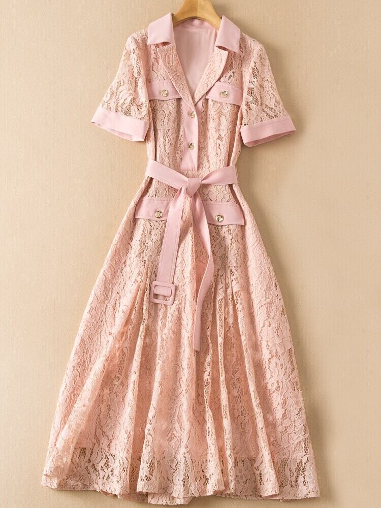 春夏の女性のラペル レース ミディ ドレス オフィス パーティー ドレス スプリング 春物 サマー 夏物 会社 学校 通勤や通学にも pri72276969713