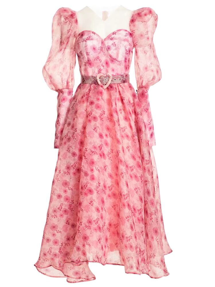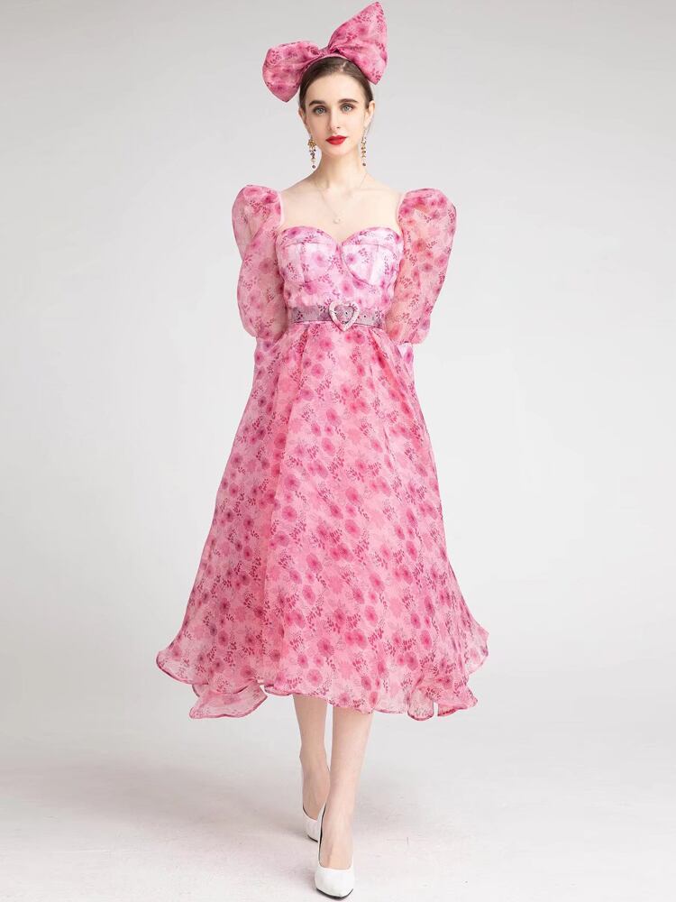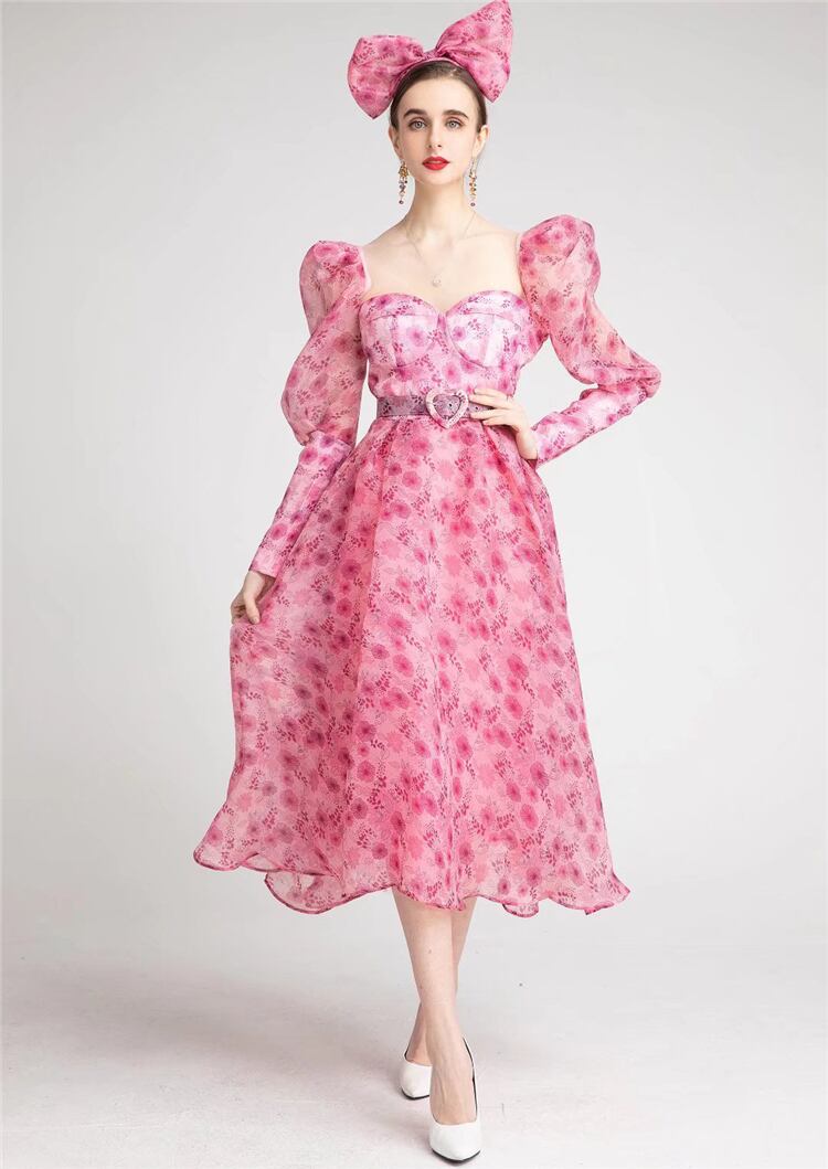 女性の 2022 春のパフ スリーブ ストリート ピンク ミディ ドレス セクシーなパーティー ドレス スプリング 春物 pri6171513249