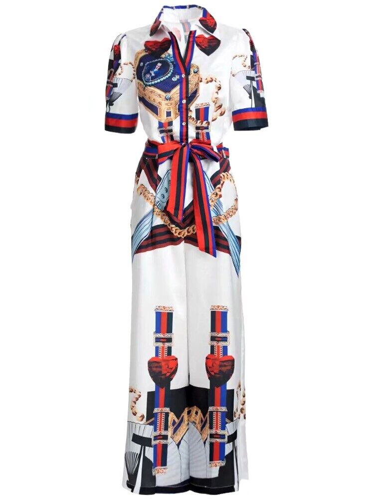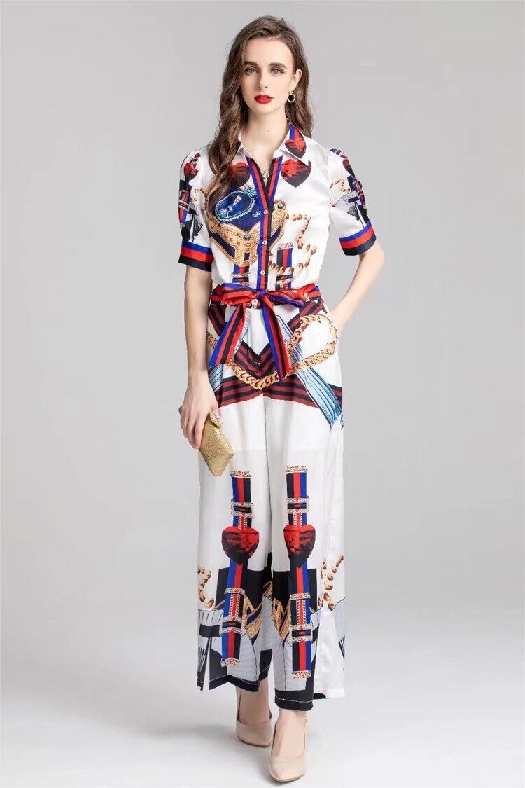 夏の女性のセット プリント シャツ トップス ワイドレッグ パンツ パーティー オフィス スーツ サマー 夏物 ワイドパンツ 会社 学校 通勤や通学にも pri5844725963