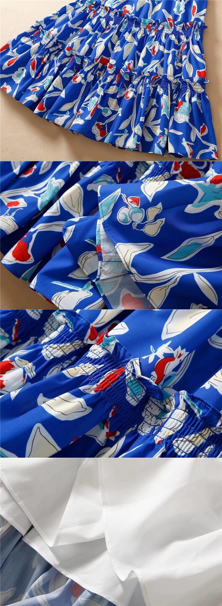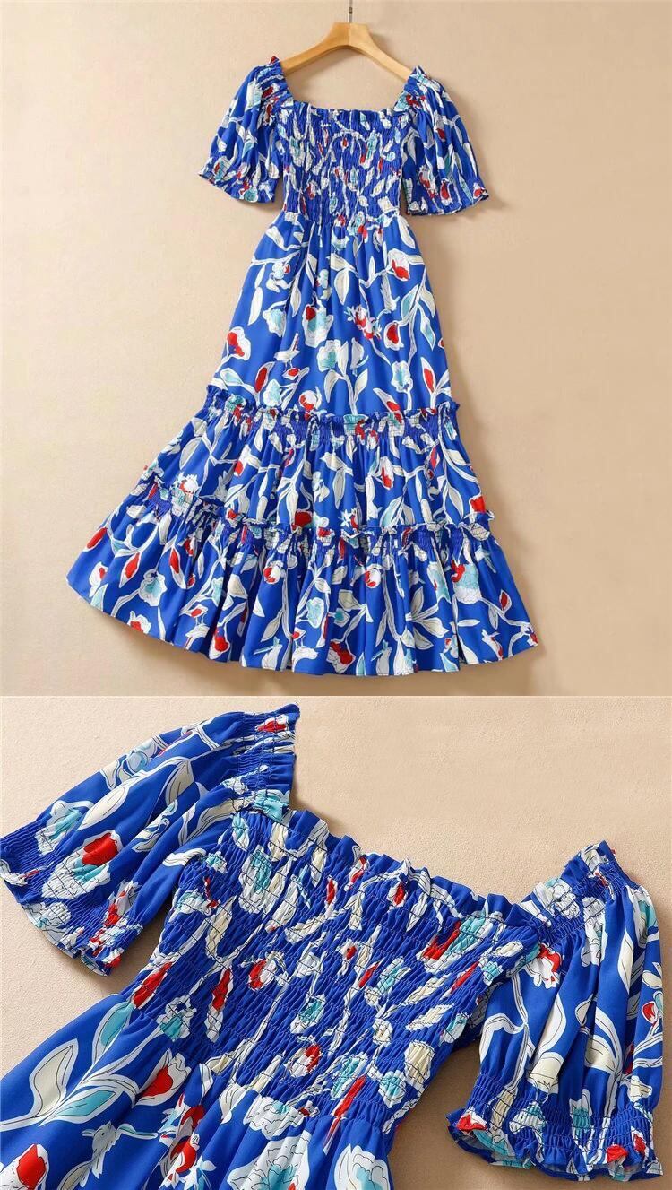 Kate レディース サマー ボヘミアン 半袖 ブルー プリント パーティードレス ショート ハーフスリーブ 夏物 pri21173111567