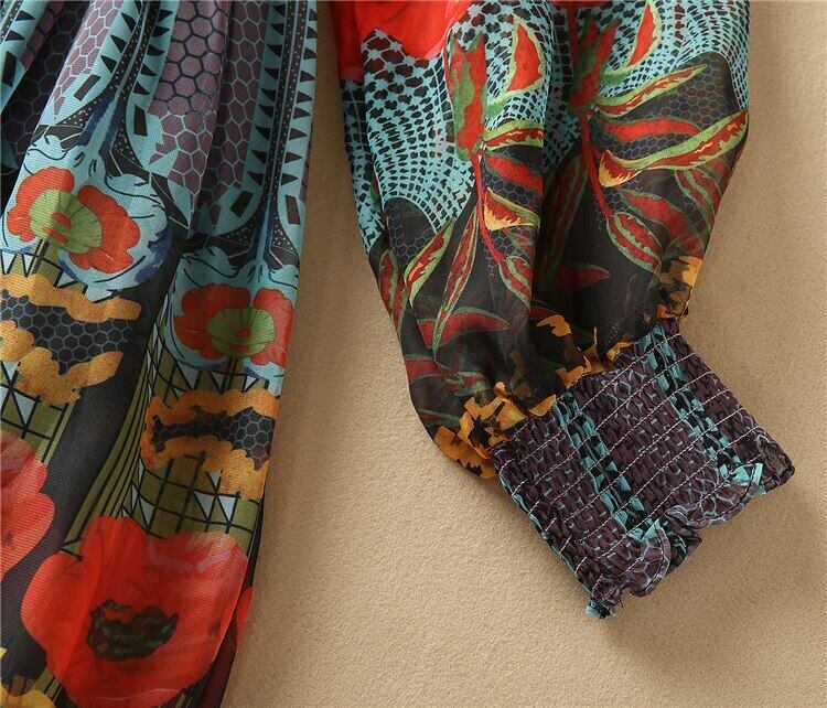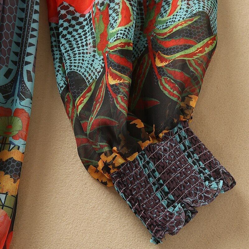 2022 春の女性のボヘミアン レトロ パーティー長袖プリント シフォン ミディ ドレス ロング スプリング 春物 pri21099999709