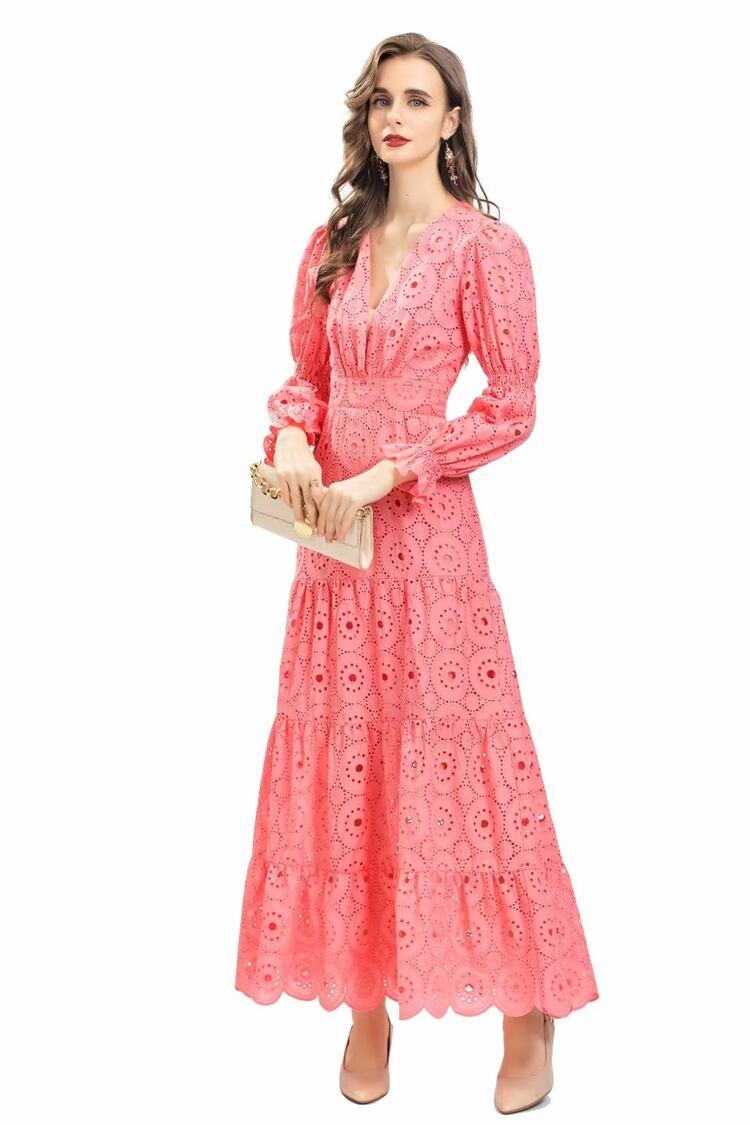 春秋の女性の有名人のパーティーシックでゴージャスな刺繍のセクシーなロングドレス レッド スプリング 春物 オータム 秋物 pri47267168764