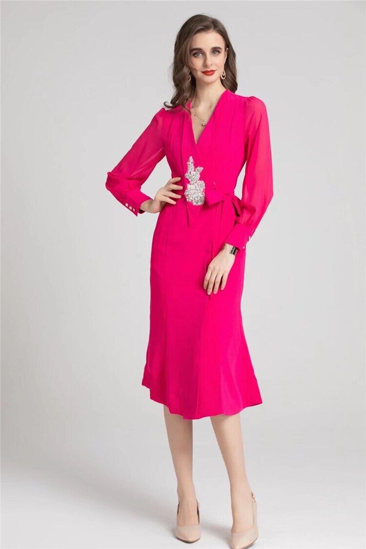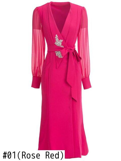 春夏の女性のオフィス有名人パーティー メッシュ長袖ミディ ドレス ロング スプリング 春物 サマー 夏物 会社 学校 通勤や通学にも pri82730604556