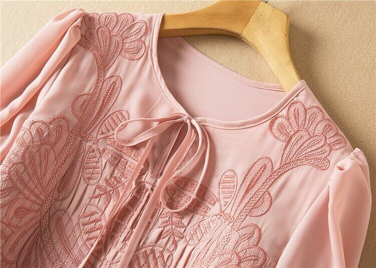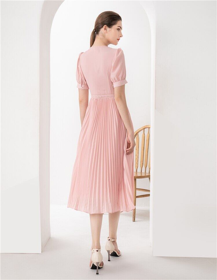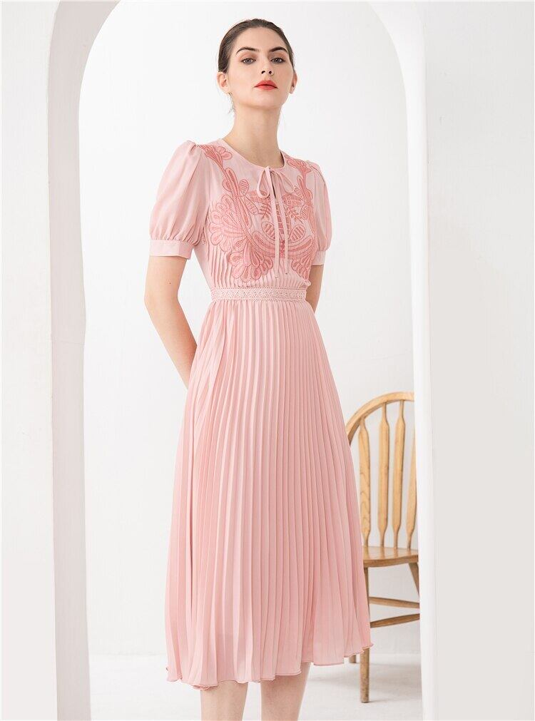 春夏レディースミディドレスパーティー刺繍半袖ピンクドレス ショート ハーフスリーブ スプリング 春物 サマー 夏物 pri90989835683