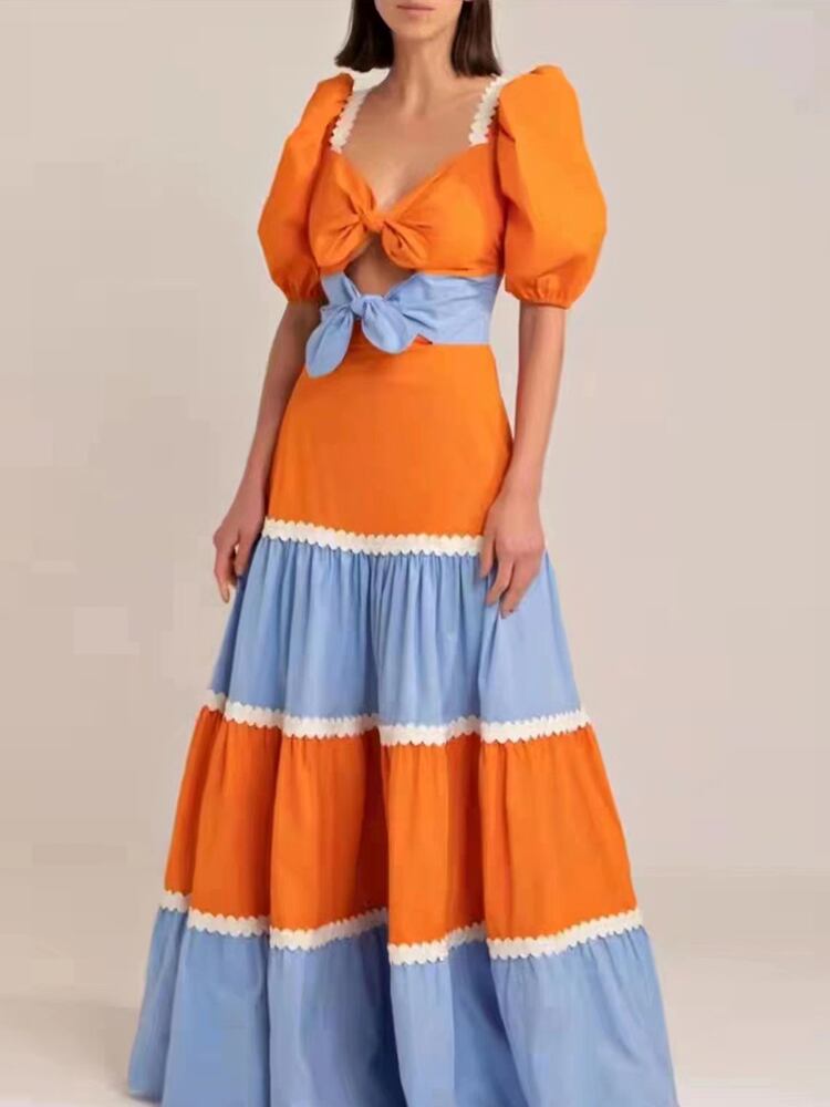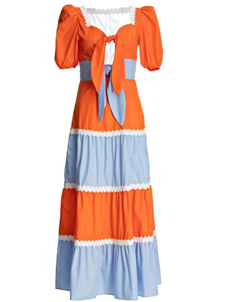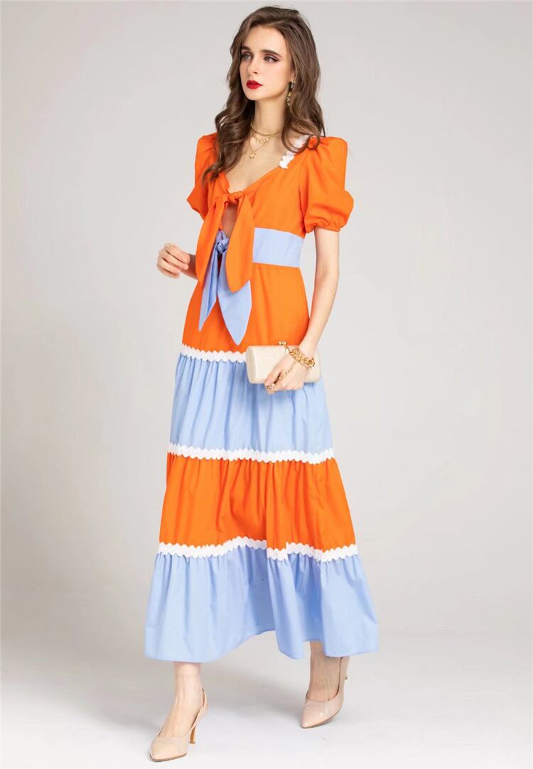 女性の夏のランタンスリーブスリム明るいロングドレスセクシーな休暇パーティードレス サマー 夏物 pri42527447485