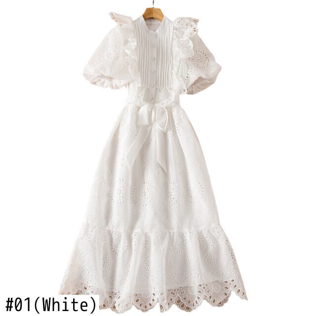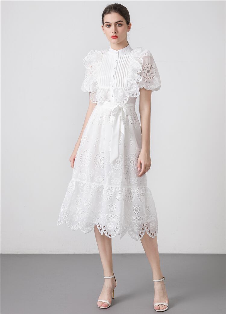 夏の女性のミディ ドレス パーティー刺繍半袖ホワイト ドレス ショート ハーフスリーブ サマー 夏物 pri5526546108