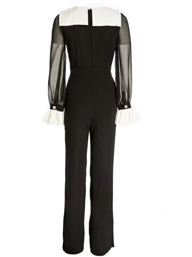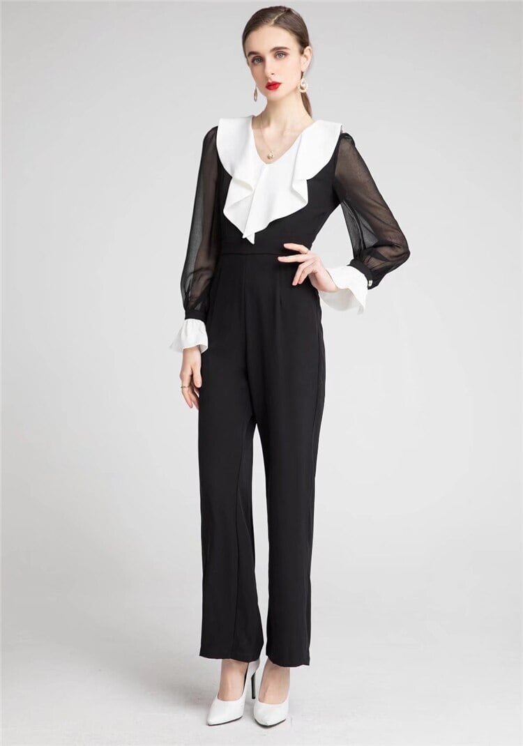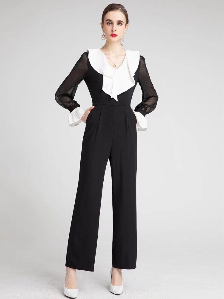 2022 春夏レディース ロンパース パーティー オフィス フリル ブラック パンツ ジャンプスーツ スプリング 春物 サマー 夏物 会社 学校 通勤や通学にも pri37649580885