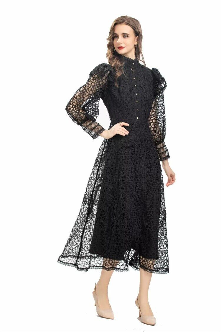 春秋の女性のストリートセレブリティパーティーゴージャスな中空アウトボタンミディドレス スプリング 春物 オータム 秋物 pri71203695318