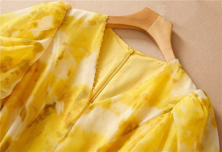 レディースサマーバケーションストリートセレブリティパーティーVネックビーズプリントドレス 夏物 pri5045568343
