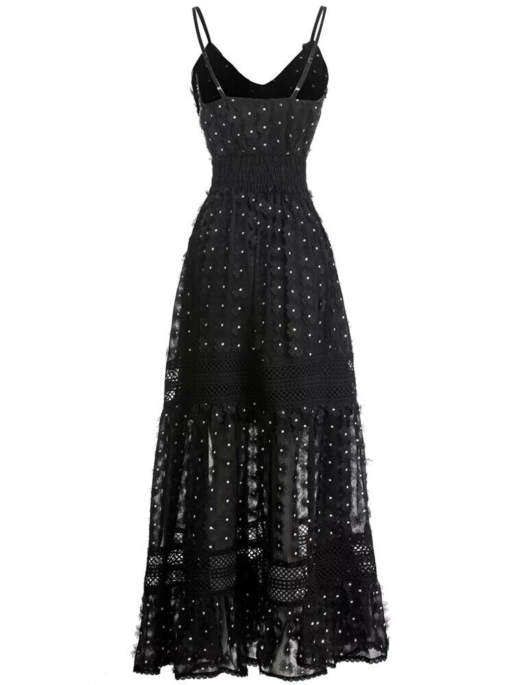 夏の女性のストリート セレブリティ パーティー セクシーなサスペンダー ブラック ロング ドレス サマー 夏物 pri19252747533