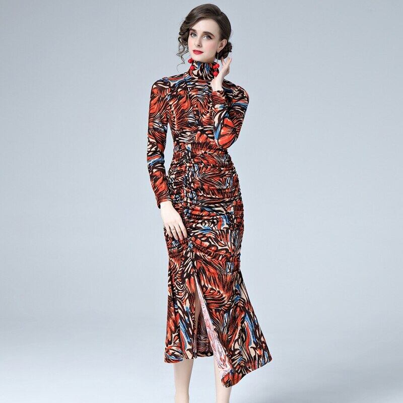 春秋の女性ロングドレス長袖スリムセクシーなプリントパーティードレス スプリング 春物 オータム 秋物 pri3373199434
