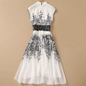 女性の夏のレース プリント シフォン休暇オフィス パーティー ドレス サマー 夏物 会社 学校 通勤や通学にも pri78129497931