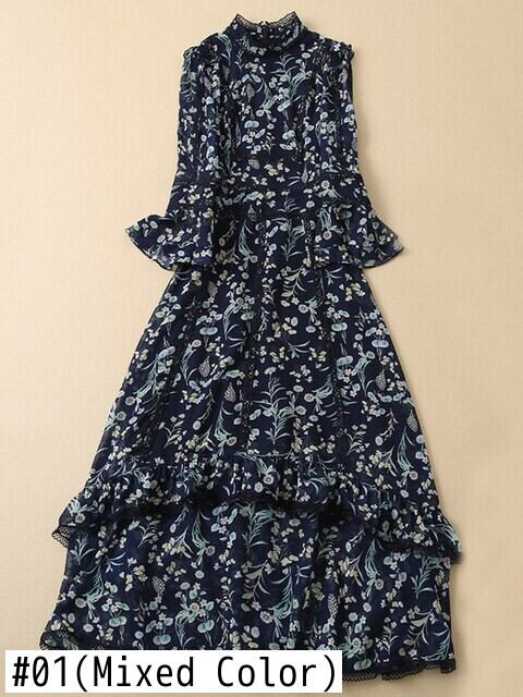 春秋の女性の休暇有名人パーティー プリント ロング ドレス スプリング 春物 オータム 秋物 pri94127808030