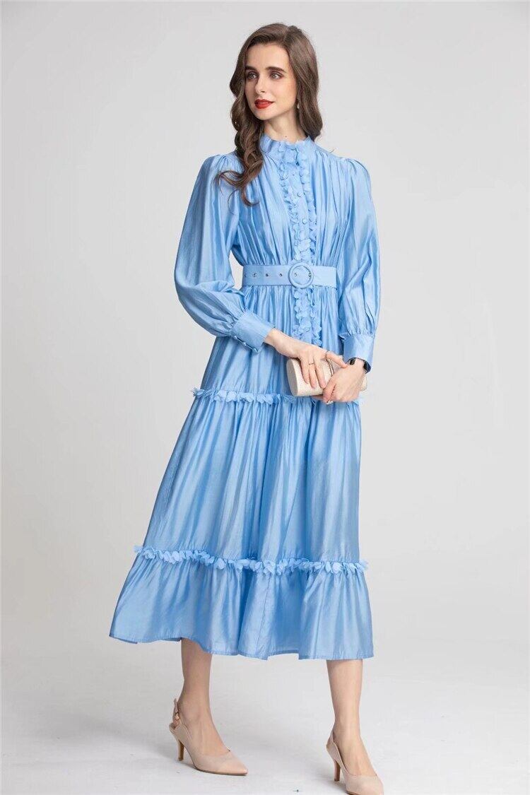滑走路女性春秋の休暇有名人パーティー ベルト ボタン ドレス スプリング 春物 オータム 秋物 ハーネス pri96893118173