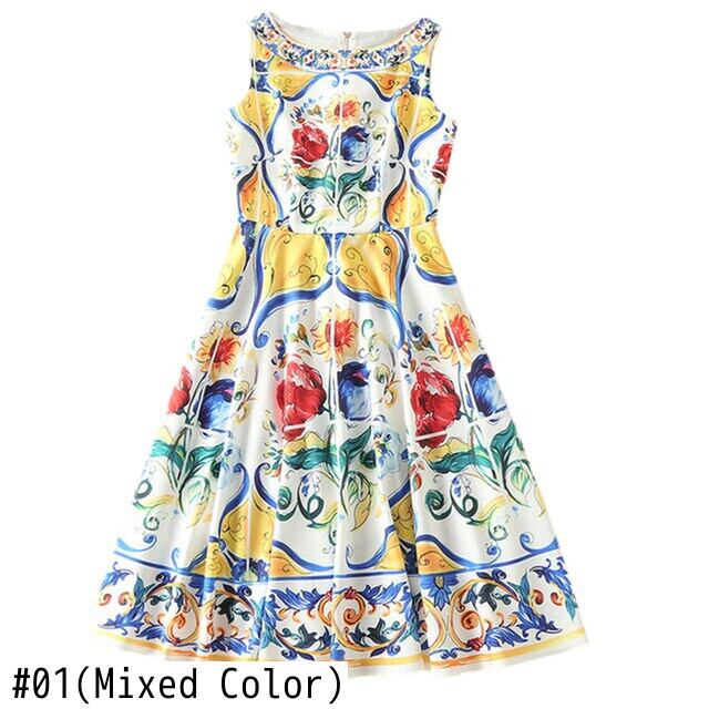 夏の女性のシックなパーティー ストリート プリント A ライン ベスト ドレス サマー 夏物 Aライン pri3094657666