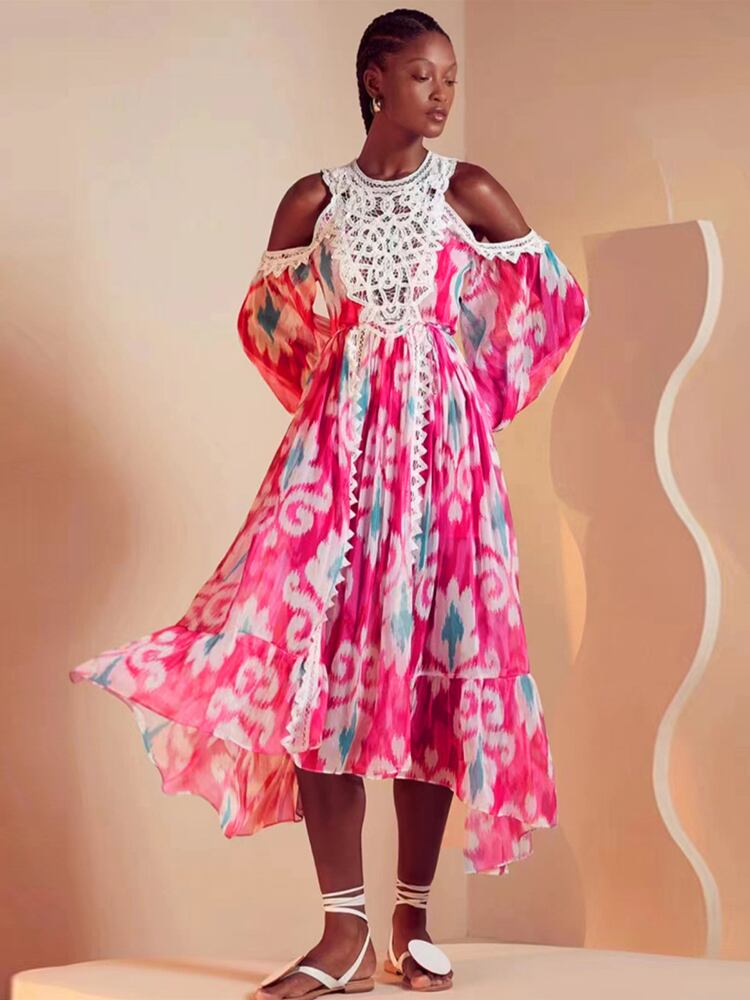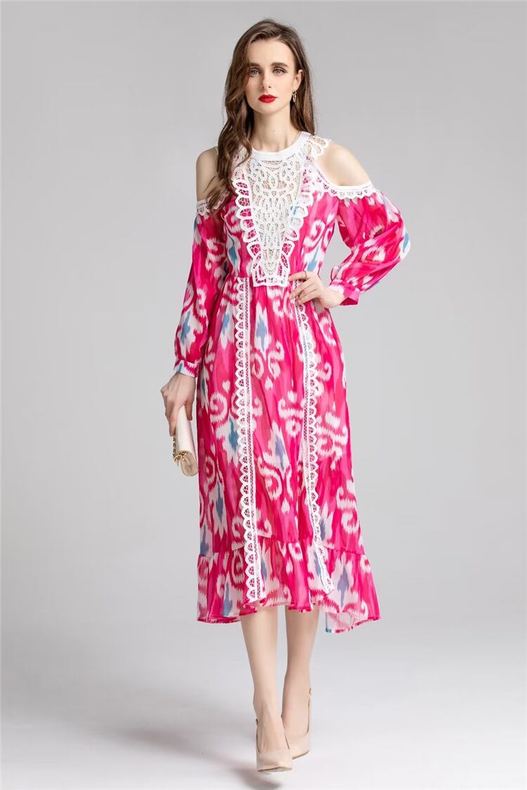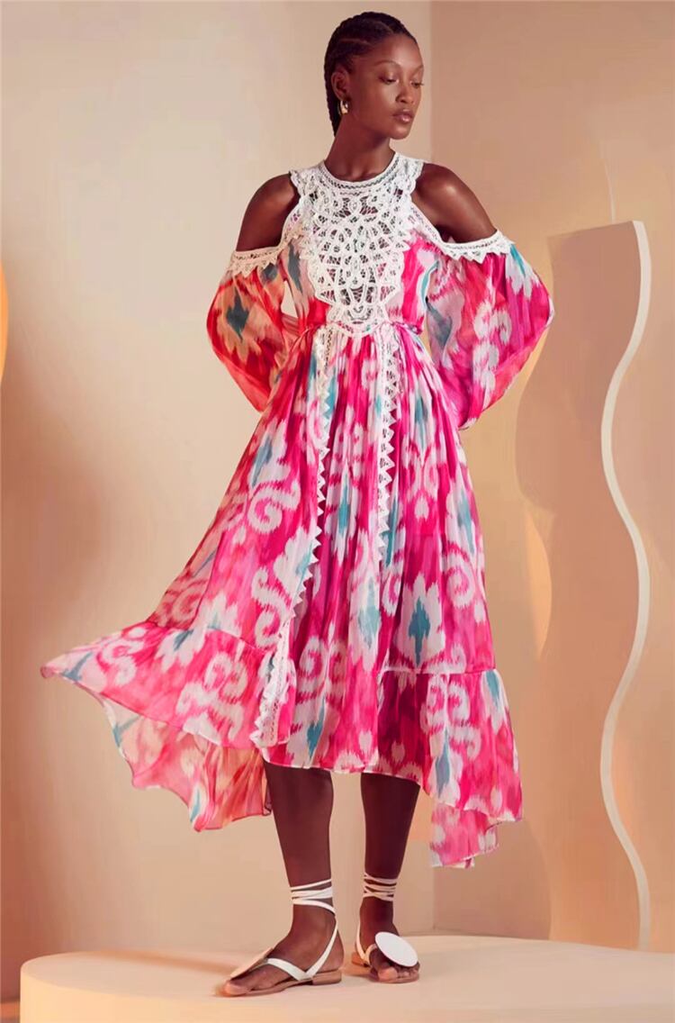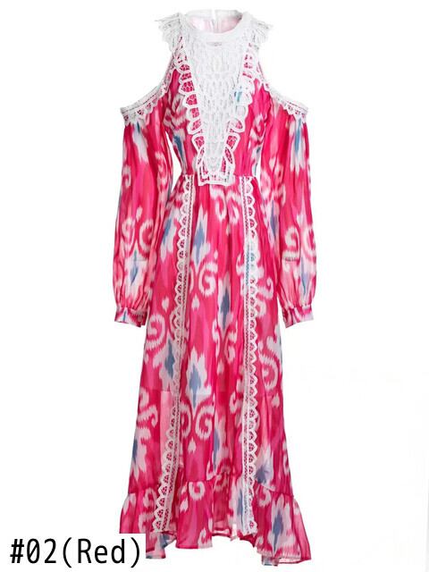 夏の女性のボヘミアン セレブリティ パーティー セクシーなオフショルダー レッド プリント ミディ ドレス サマー 夏物 pri72488548711