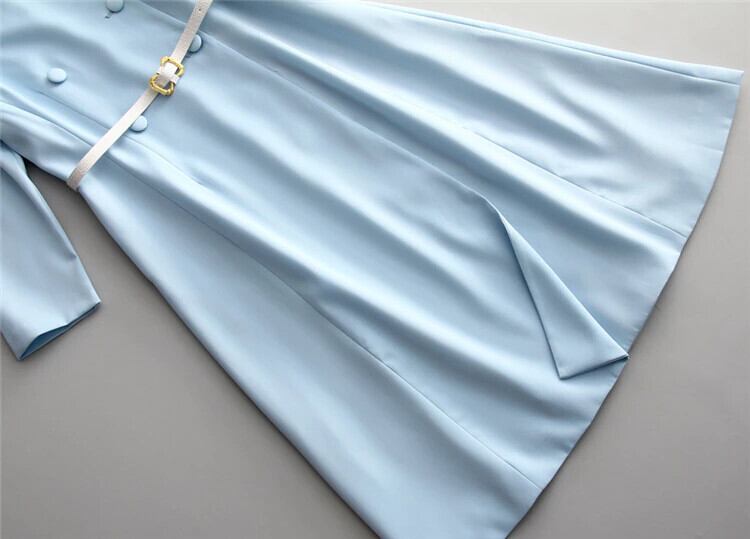 春秋の女性のミディ ドレス シックなパーティー ベルト ボタン ラウンド ネック ストリート ドレス スプリング 春物 オータム 秋物 ハーネス Oネック pri50520599972