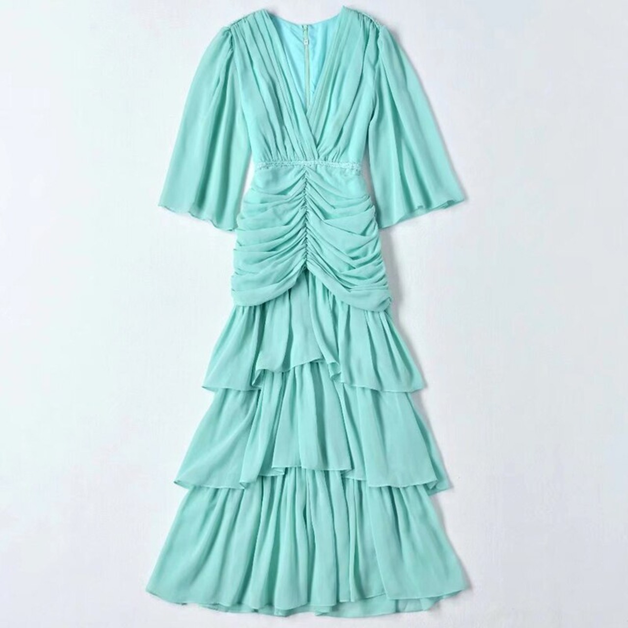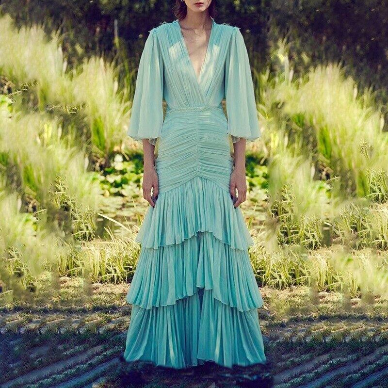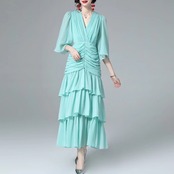 2022 春夏レディース パーティー セクシー フリル シフォン ロング ドレス ラッフル スプリング 春物 サマー 夏物 pri98226144058