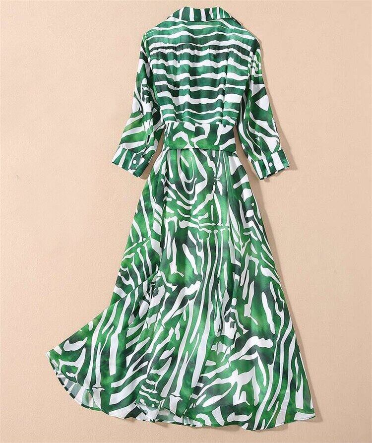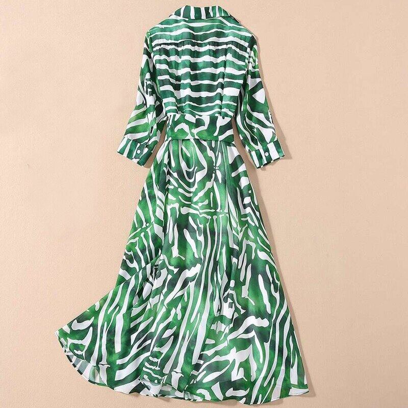 春秋のボヘミアン女性のミディ ドレス シックなベルト ストリート パーティー グリーン ストライプ シャツ ドレス スプリング 春物 オータム 秋物 ハーネス pri35258514396