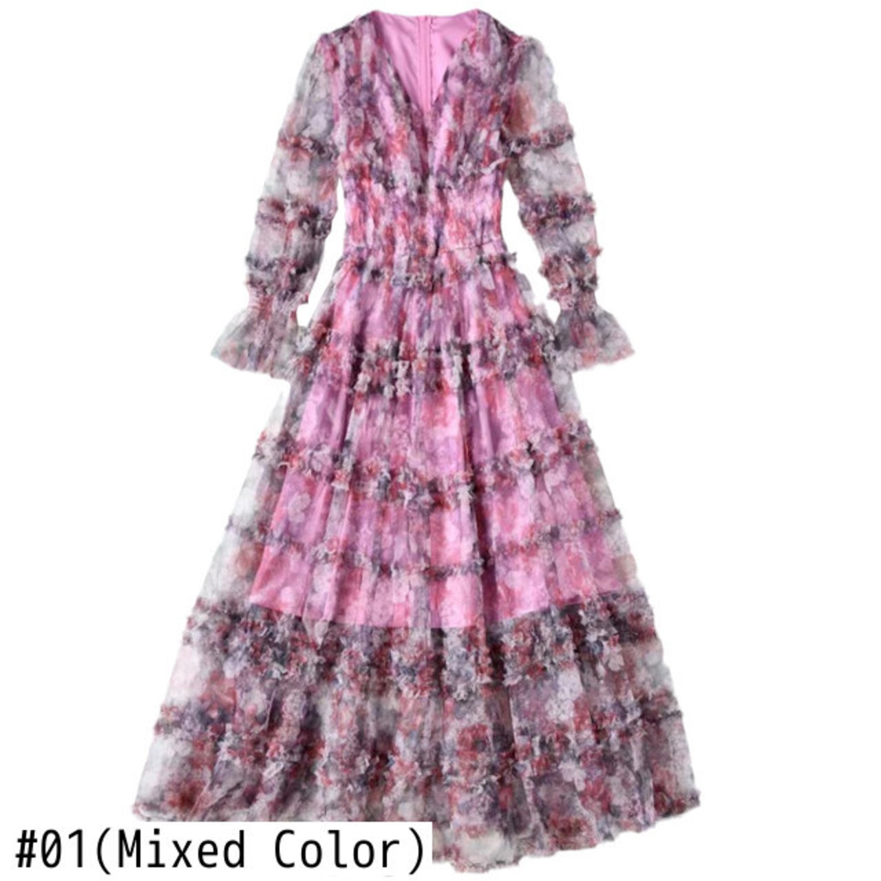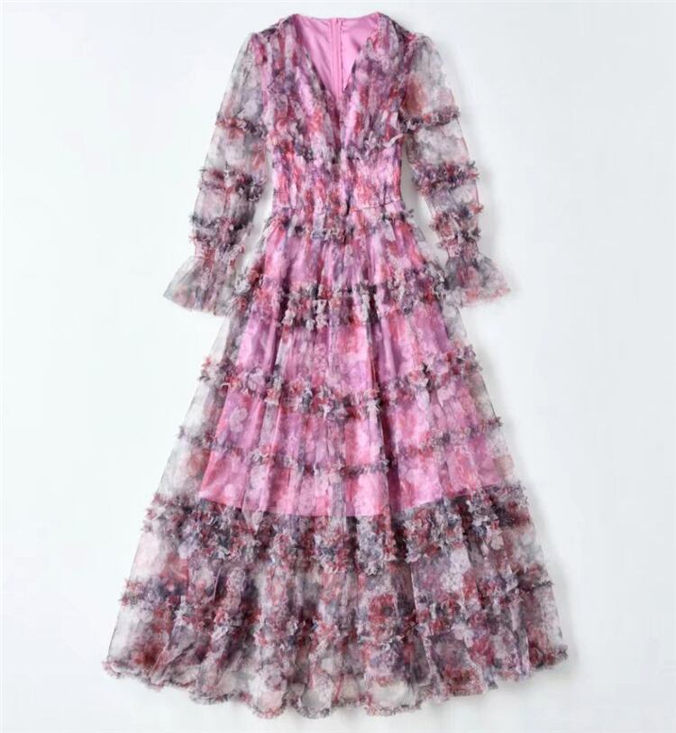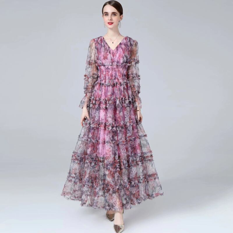 2022 春の女性のボヘミア パーティー セクシーな長袖プリント メッシュ ロング ドレス スプリング 春物 pri21378276708