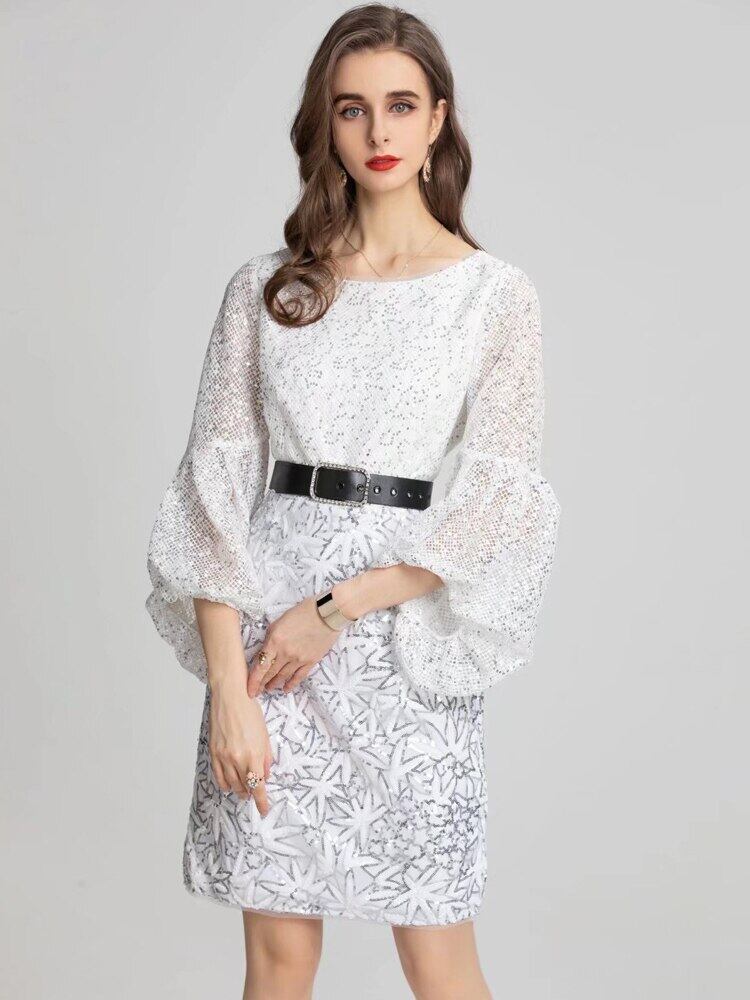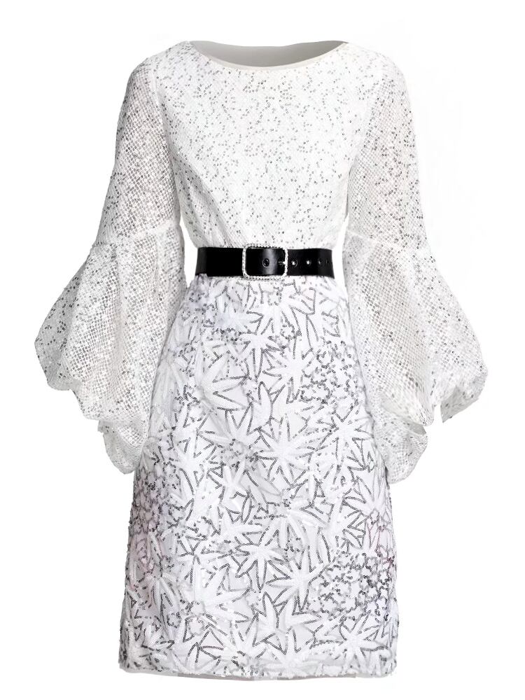 女性の春秋のシックなゴージャスなスパンコール フレア袖滑走路セレブ パーティー ドレス フレアスリーブ スプリング 春物 オータム 秋物 pri47272540864