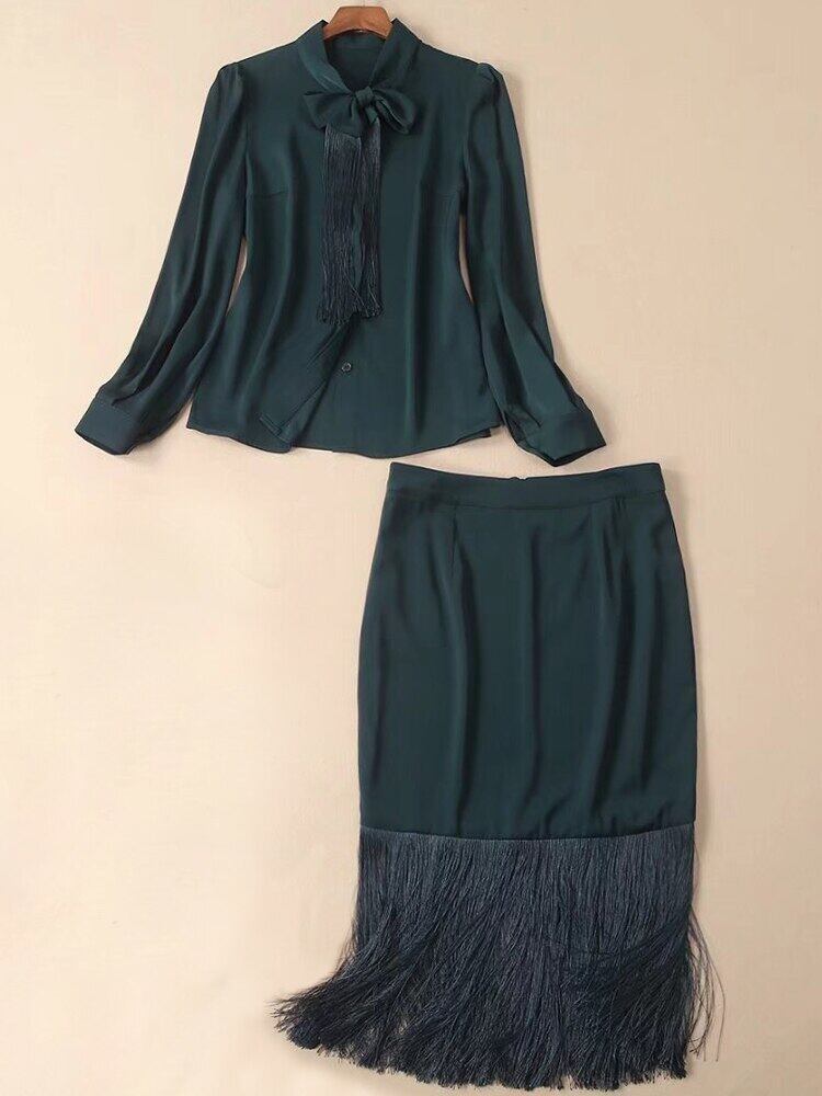 秋の女性のセット シャツ トップス スリム フリンジ スカート パーティー有名人のスーツ オータム 秋物 pri9188183585