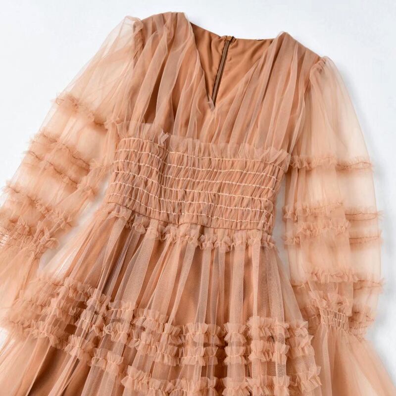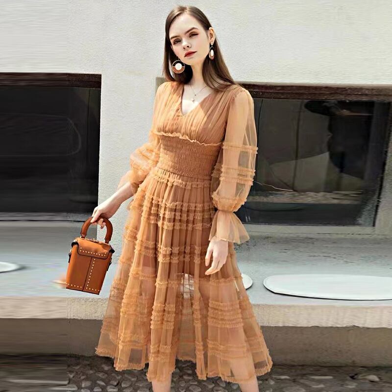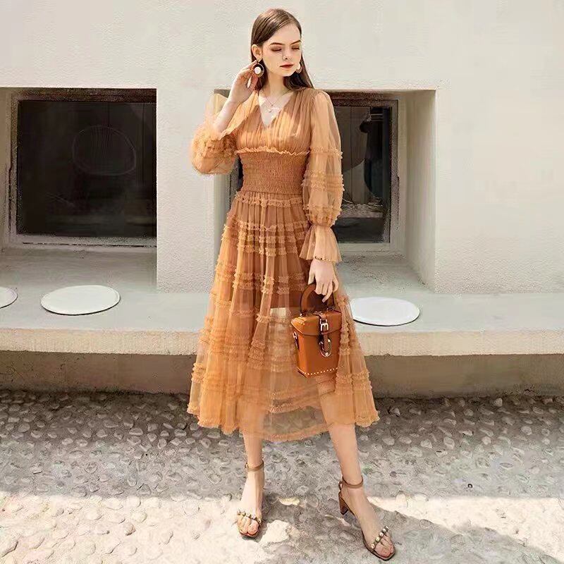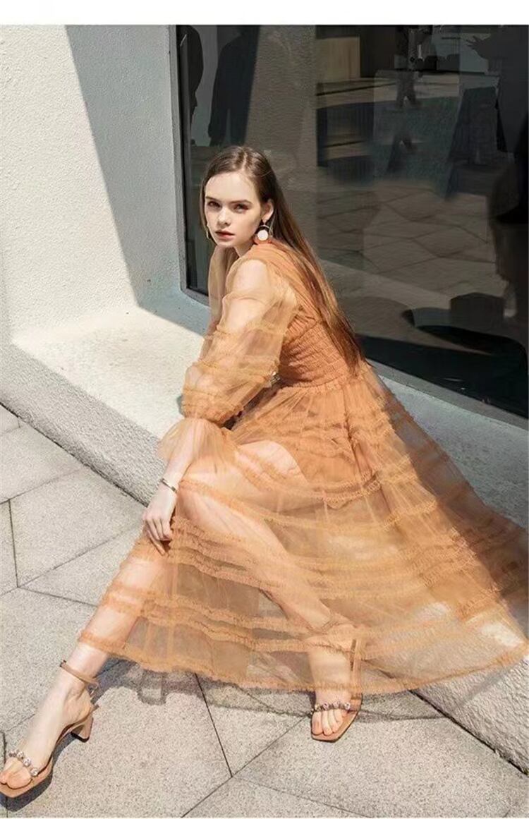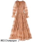 2022 春の女性のボヘミアン パーティー セクシーな長袖メッシュ ロング ドレス スプリング 春物 pri24900587673