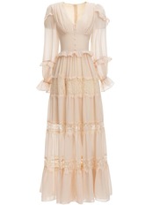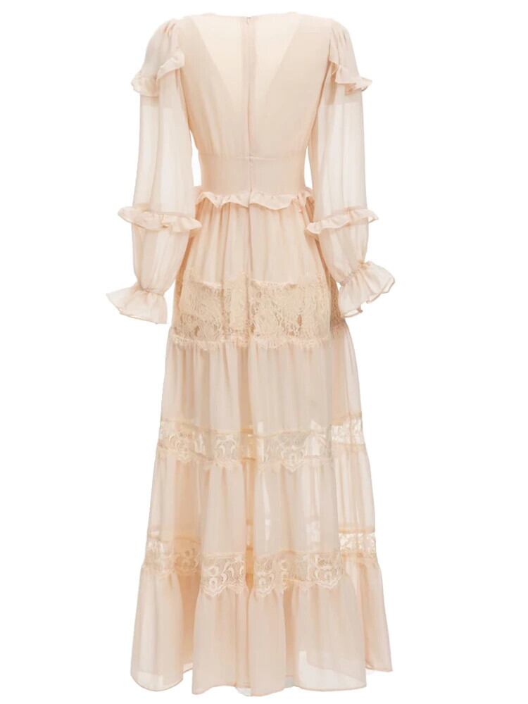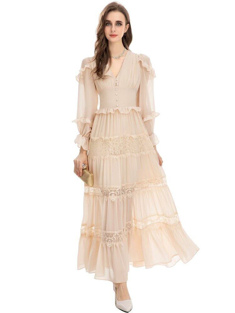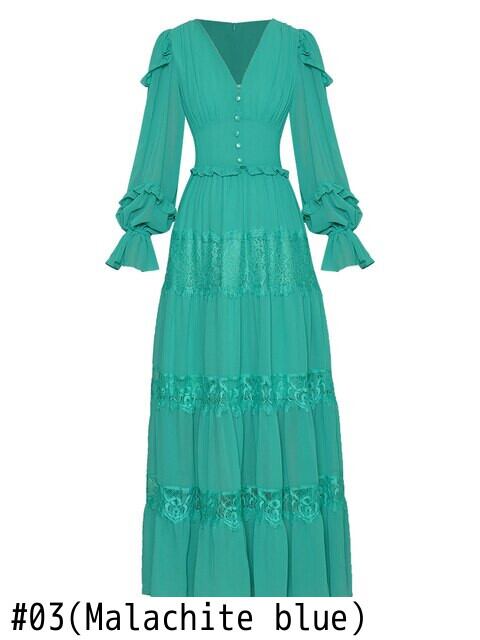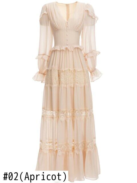 女性の春秋のパーティー休日長袖レース シフォン ロング ドレス スプリング 春物 オータム 秋物 pri91419261347