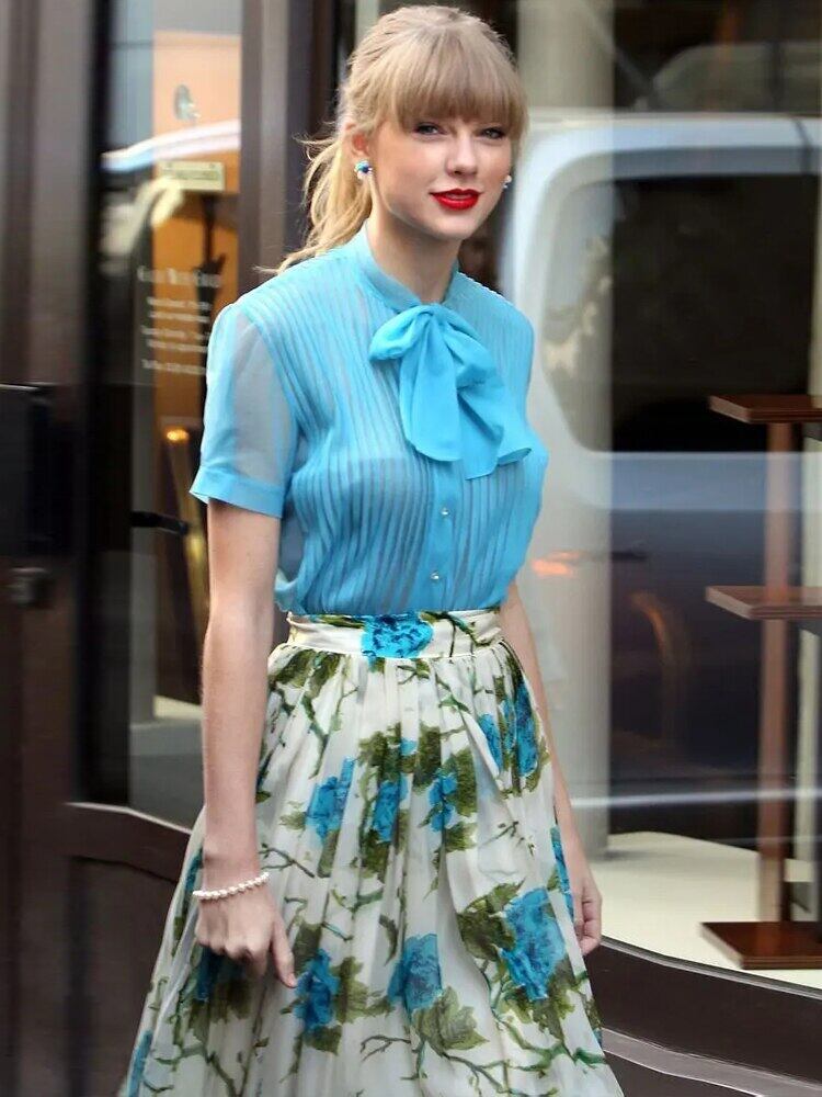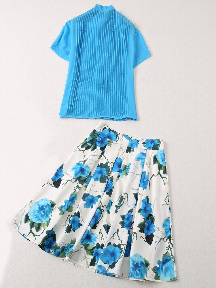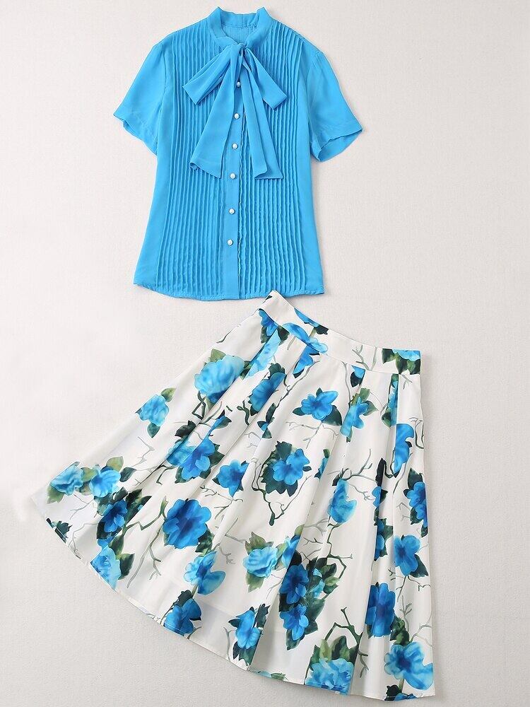 夏の女性のセット シャツ トップス プリント A ライン スカート シックなパーティー有名人のスーツ サマー 夏物 Aライン pri92675432497