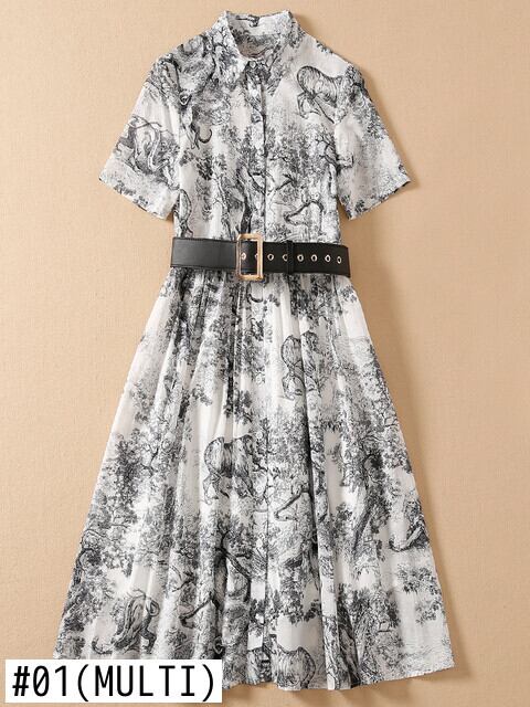 女性の 2022 夏のオフィス パーティー ベルト プリント半袖シャツ ドレス ショート ハーフスリーブ サマー 夏物 ハーネス 会社 学校 通勤や通学にも pri49552249855