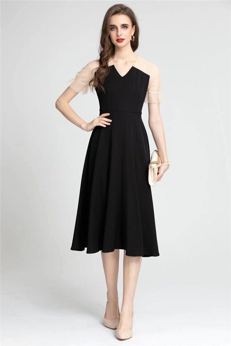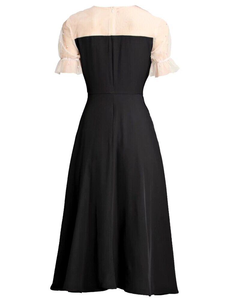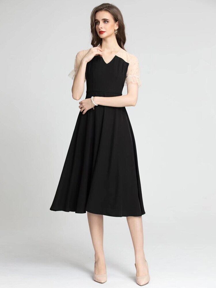 女性の春夏パッチワーク ビーズ ミディ ドレス オフィス パーティー ドレス スプリング 春物 サマー 夏物 会社 学校 通勤や通学にも pri34013824061