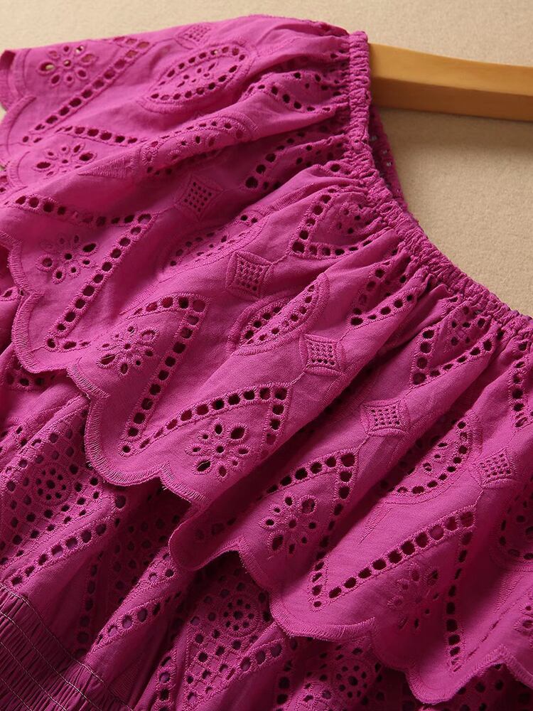 夏の女性のストリート O ネック弾性ウエスト刺繍パーティー ミディ ドレス レッド エラスティック 伸縮 サマー 夏物 Oネック pri71966906202