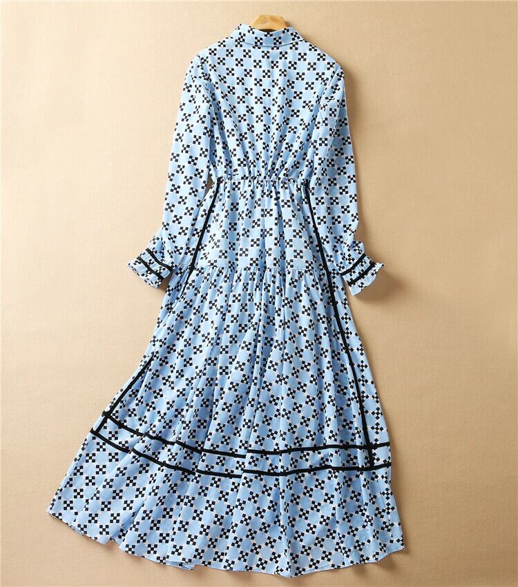 女性春秋ラペル長袖プリント パーティー職場ミディ ドレス ロング レース スプリング 春物 オータム 秋物 pri35443936