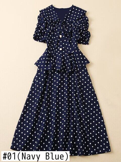 Kate レディース サマー ドット プリント シック セレブリティ パーティー 半袖 ミディドレス ショート ハーフスリーブ 夏物 pri92883952904