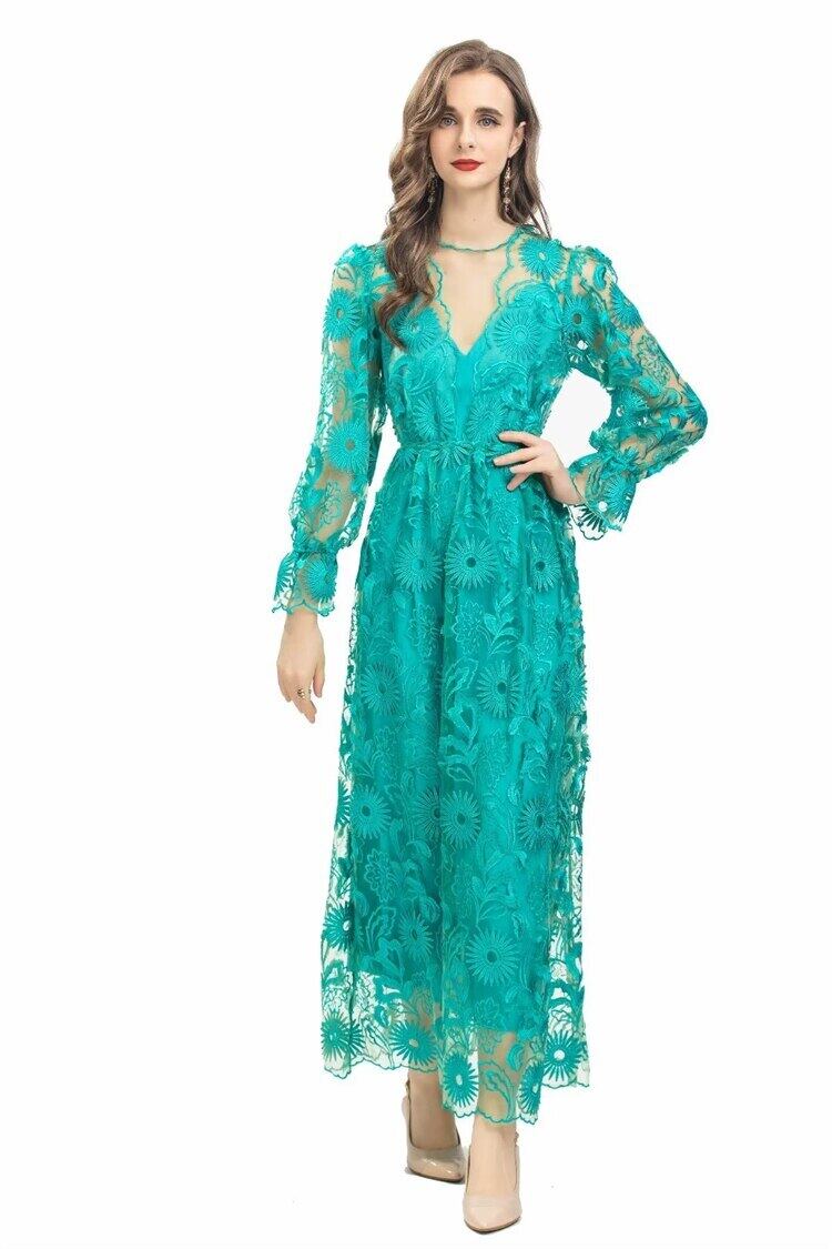 春秋の女性のセクシーな有名人のパーティー豪華な刺繍メッシュ ロング ドレス スプリング 春物 オータム 秋物 pri5244674195