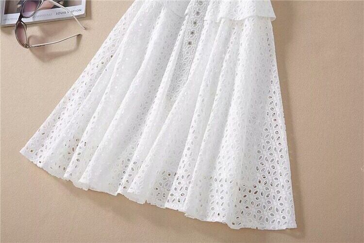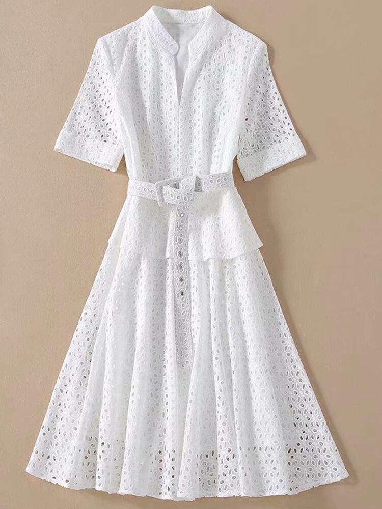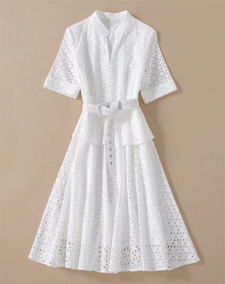 Kate レディース サマー フック フラワー ホロー パーティー 半袖 レース ホワイト ドレス ショート ハーフスリーブ 夏物 フラワーデザイン pri37766117951