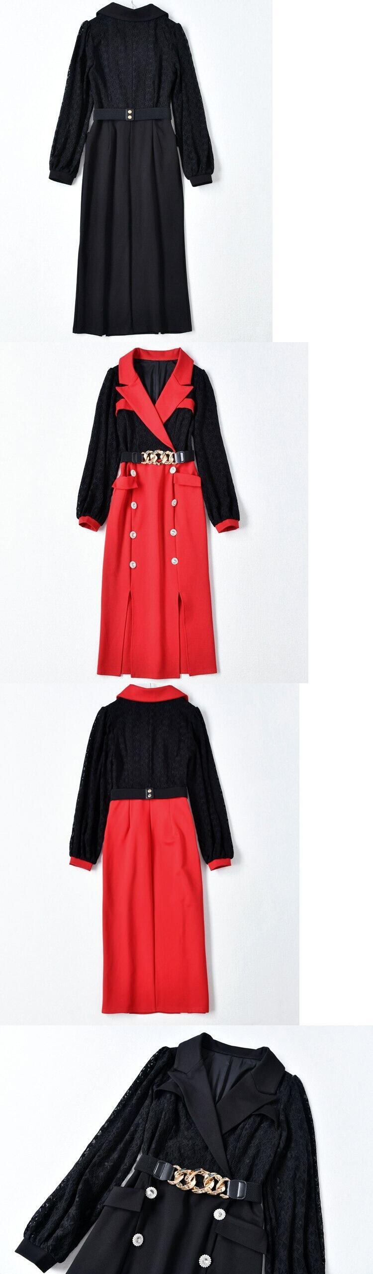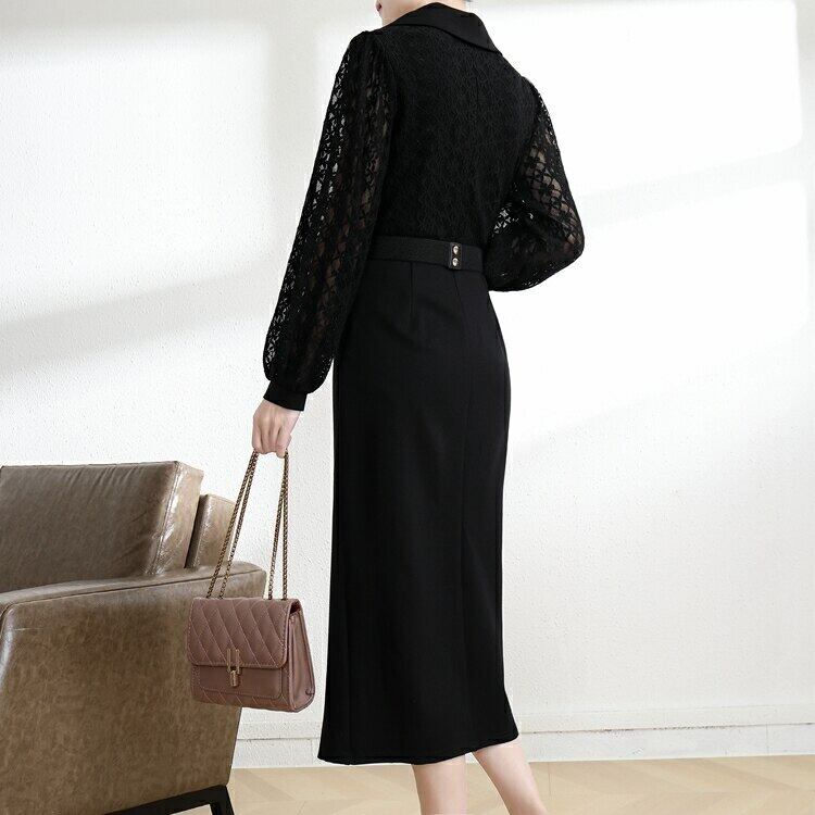 春の女性のレース長袖ラペル セクシーなオフィス パーティー ペンシル ドレス ロング スプリング 春物 会社 学校 通勤や通学にも pri42658217068