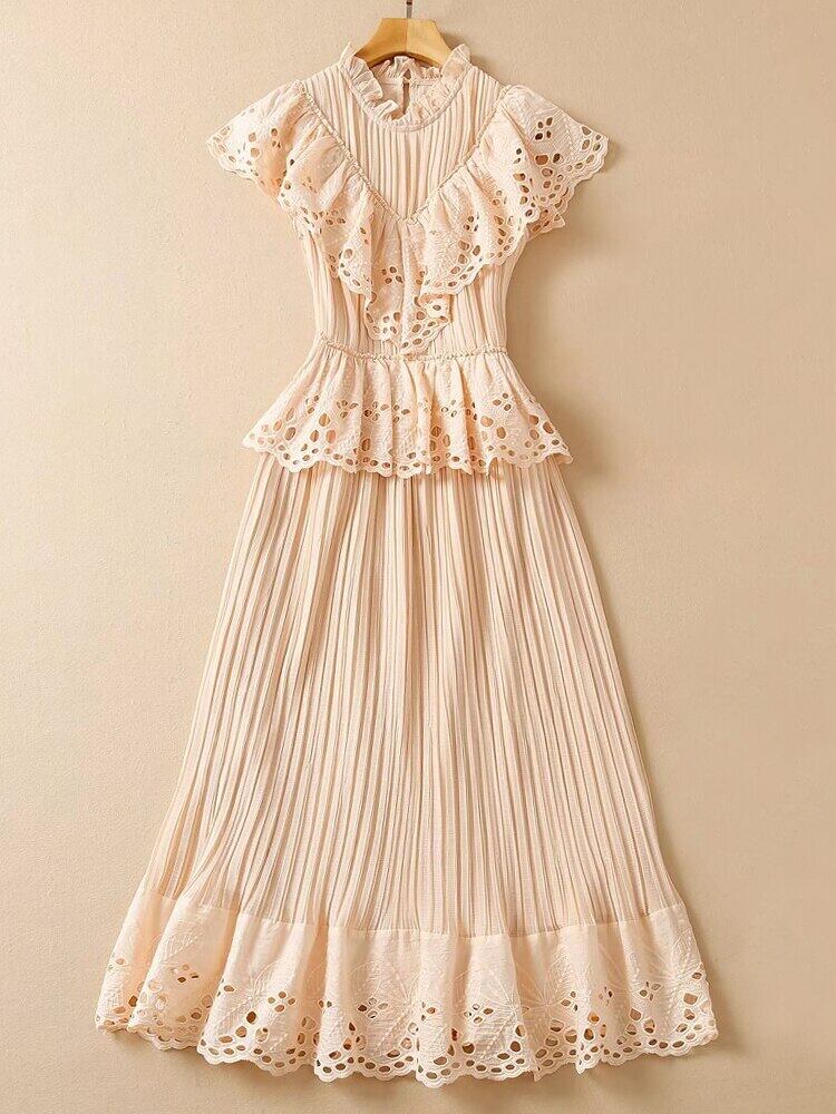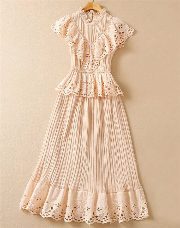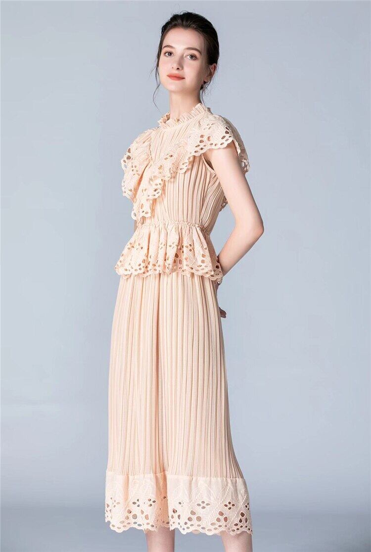 滑走路の女性の夏の弾性ウエスト フリル プリーツ パーティー ミディ ドレス ラッフル エラスティック 伸縮 サマー 夏物 pri94295029546