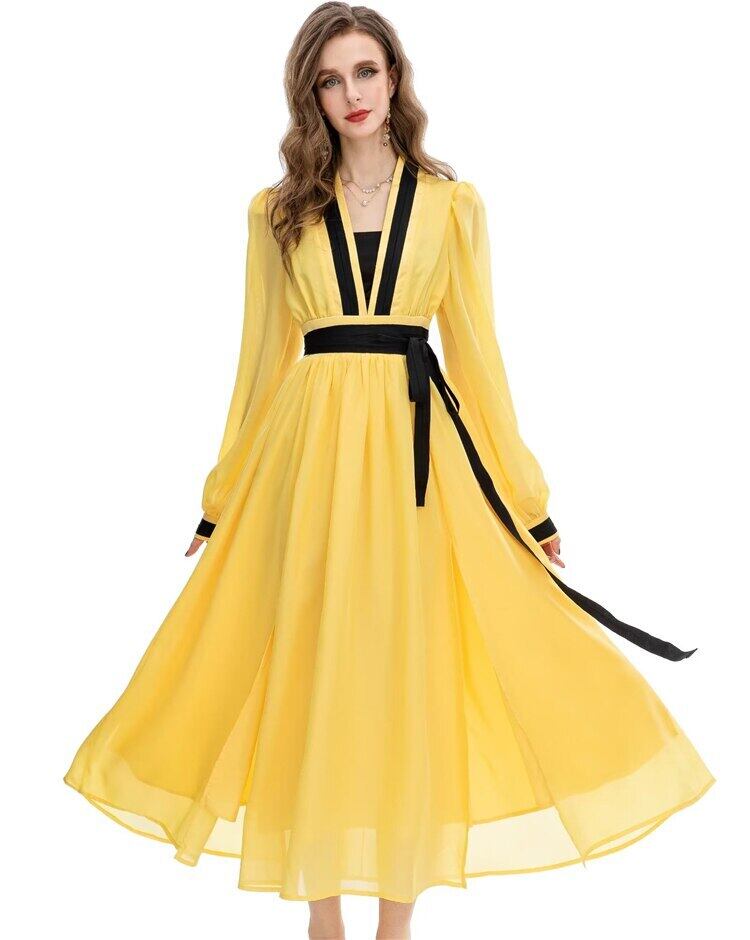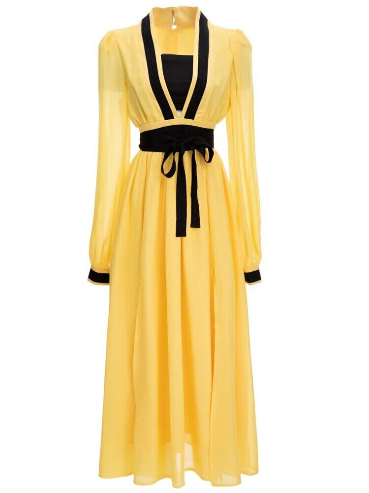 女性の春秋のボヘミアン パーティー ホリデー V ネック長袖シフォン ロング ドレス スプリング 春物 オータム 秋物 Vネック pri78736279606